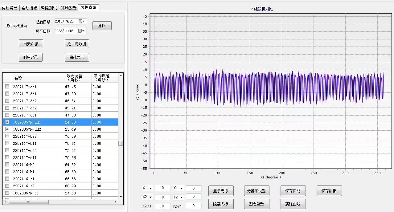 測試分為空載和帶載測試,測試時轉速和載荷可在額定范圍內自由設置,可獨立輸出誤差曲線報告。